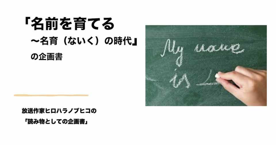 名前を育てる 名育 ないく の時代 の企画書 ヒロハラノブヒコ 放送作家第5世代 Note
